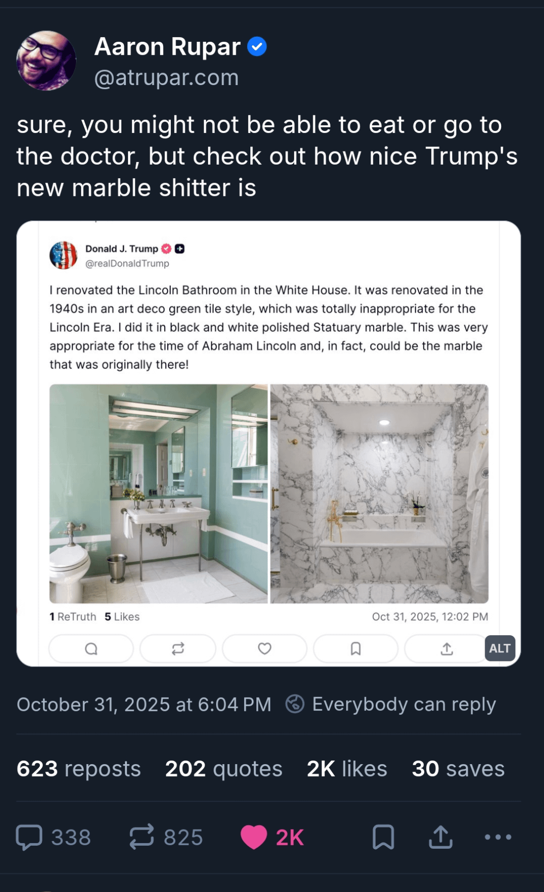 Sure, you might not be able to eat or go to the doctor, but check out how nice Trump's new marble shitter is.