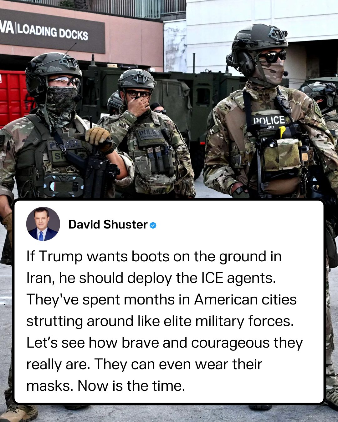 Journalist David Shuster calls on President Donald Trump to send ICE agents as his boots on the ground in Iran.Journalist David Shuster calls on President Donald Trump to send ICE agents as his boots on the ground in Iran.0 Comments 0 Shares 15 Views 0 Reviews