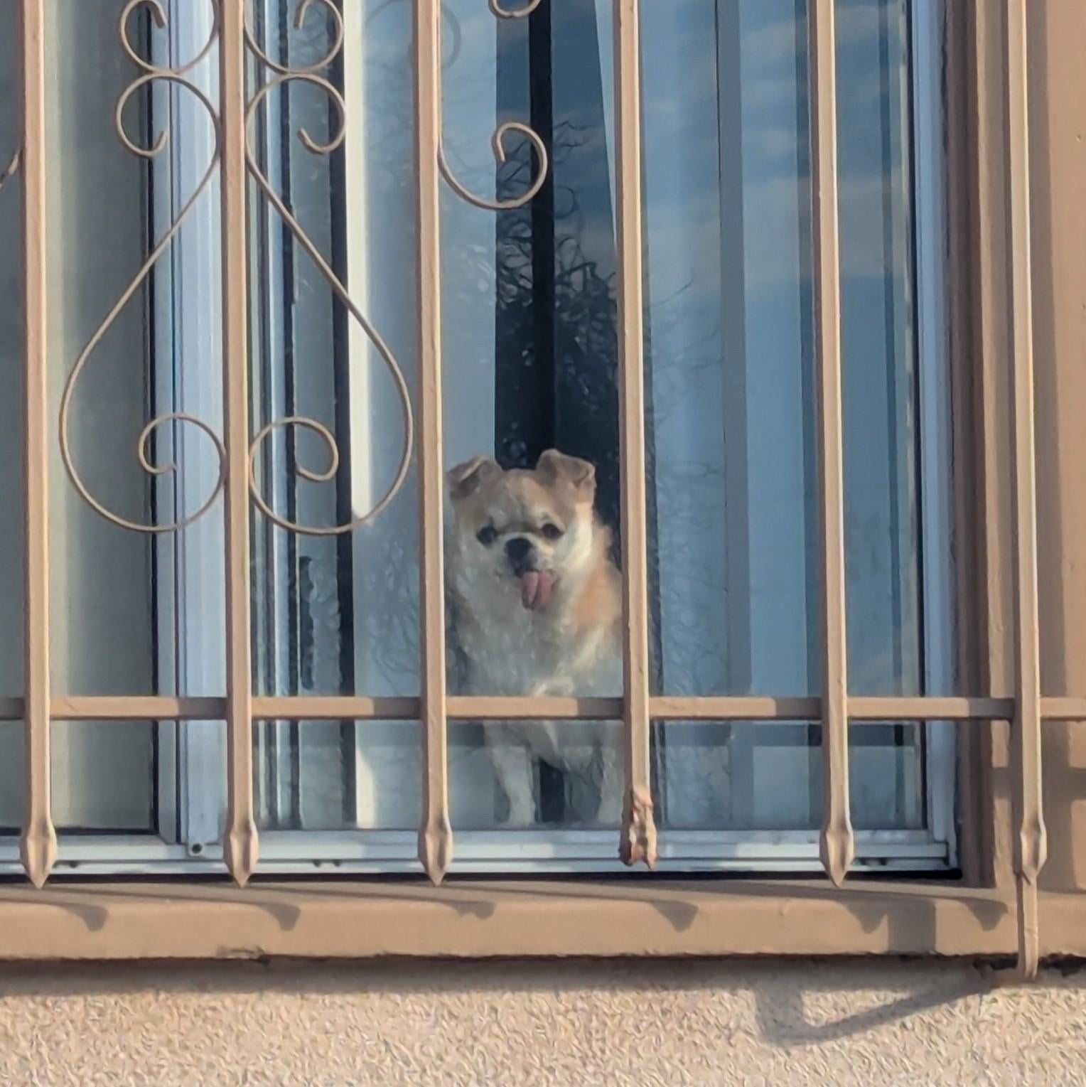 This is Chloe, she is a little old lady whose tongue hangs out because she's excited to meet everyone all the time
