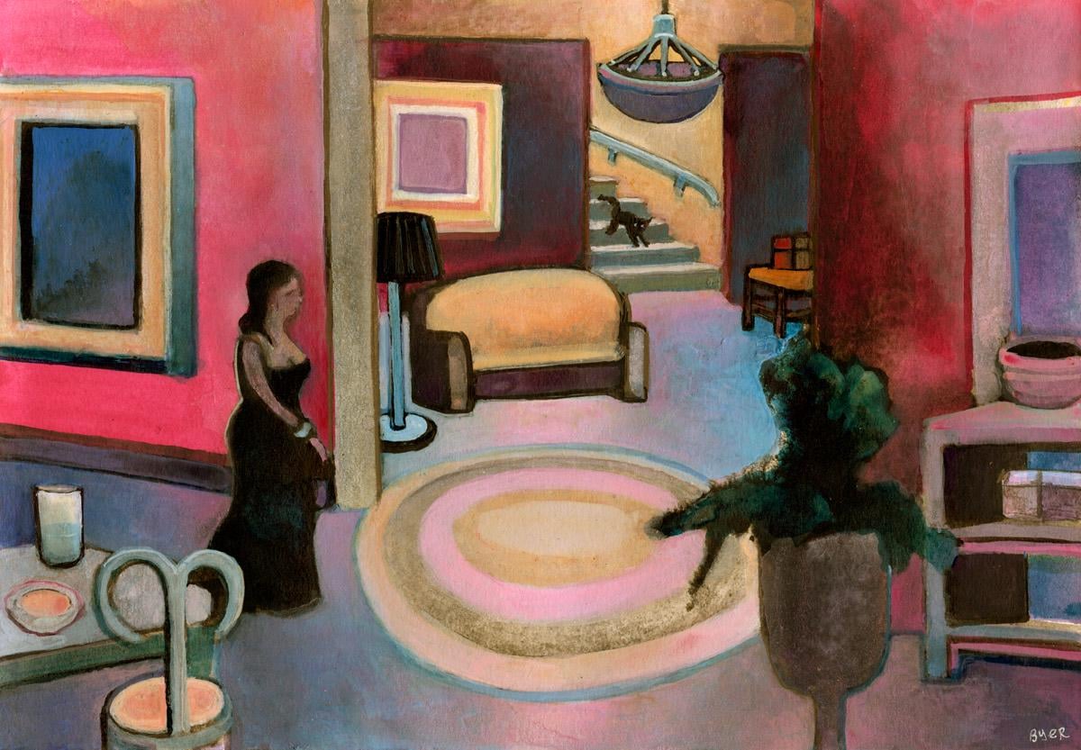 This is my painting of a dog waiting to go inside