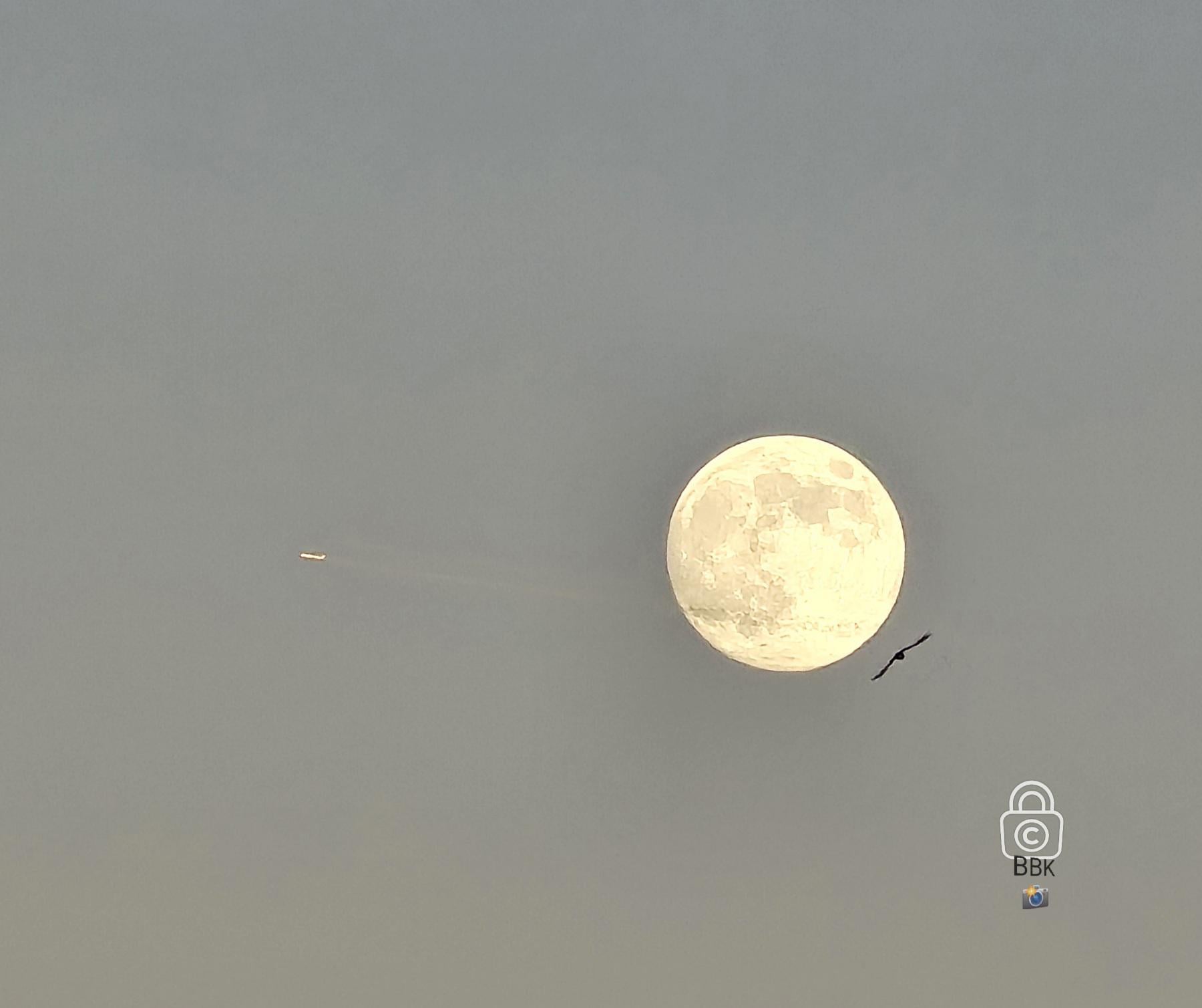 (OC)I waited for the 🌕, but a bird and a plane decided to join party..