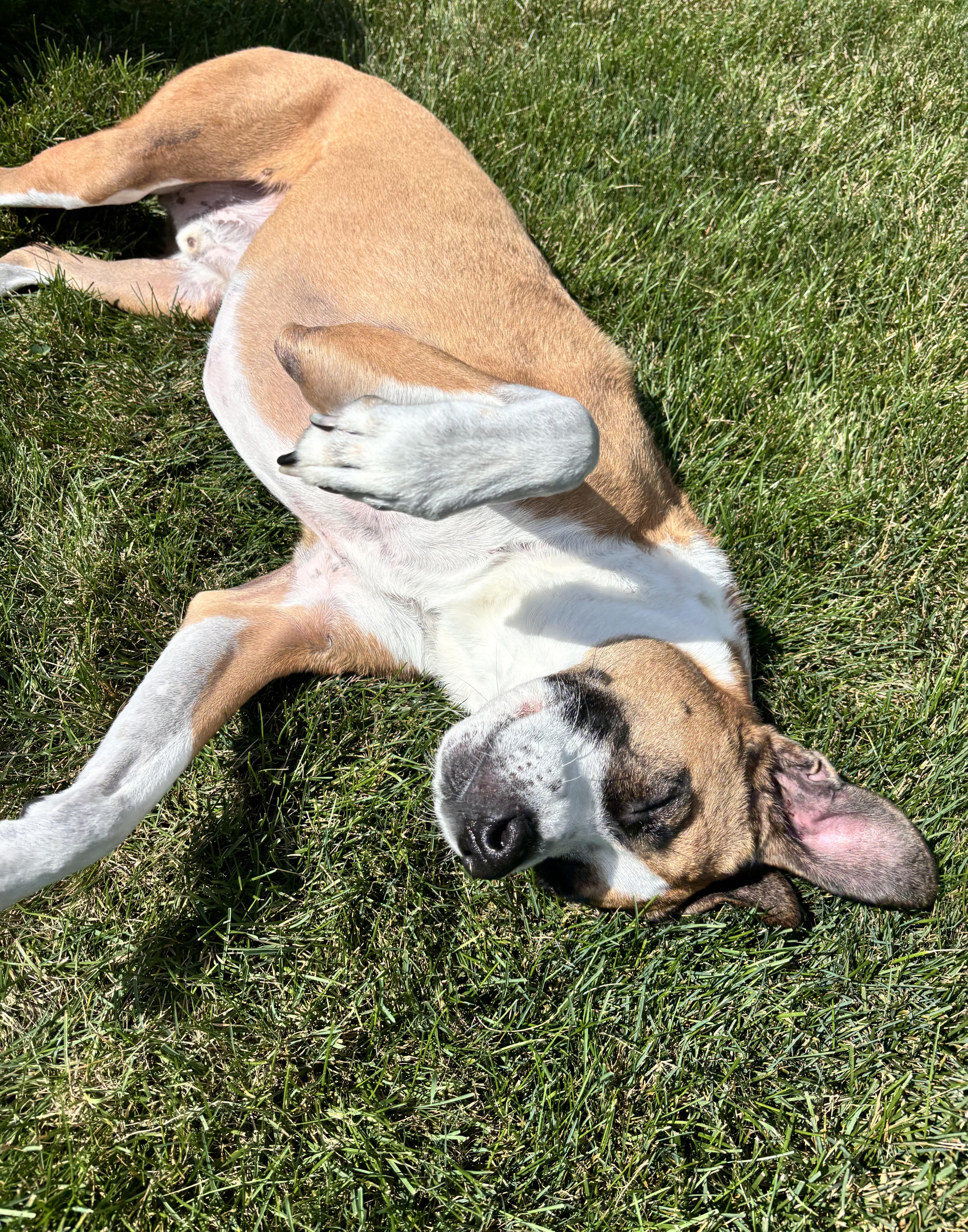 Happy sunbathing dog.