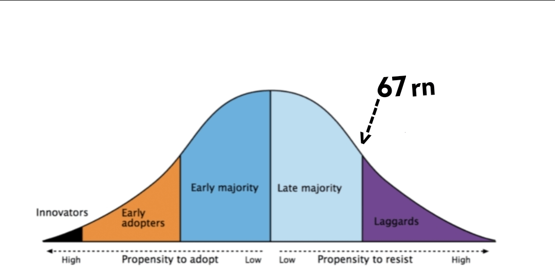 67 is almost 67% done with the innovation adoption curve