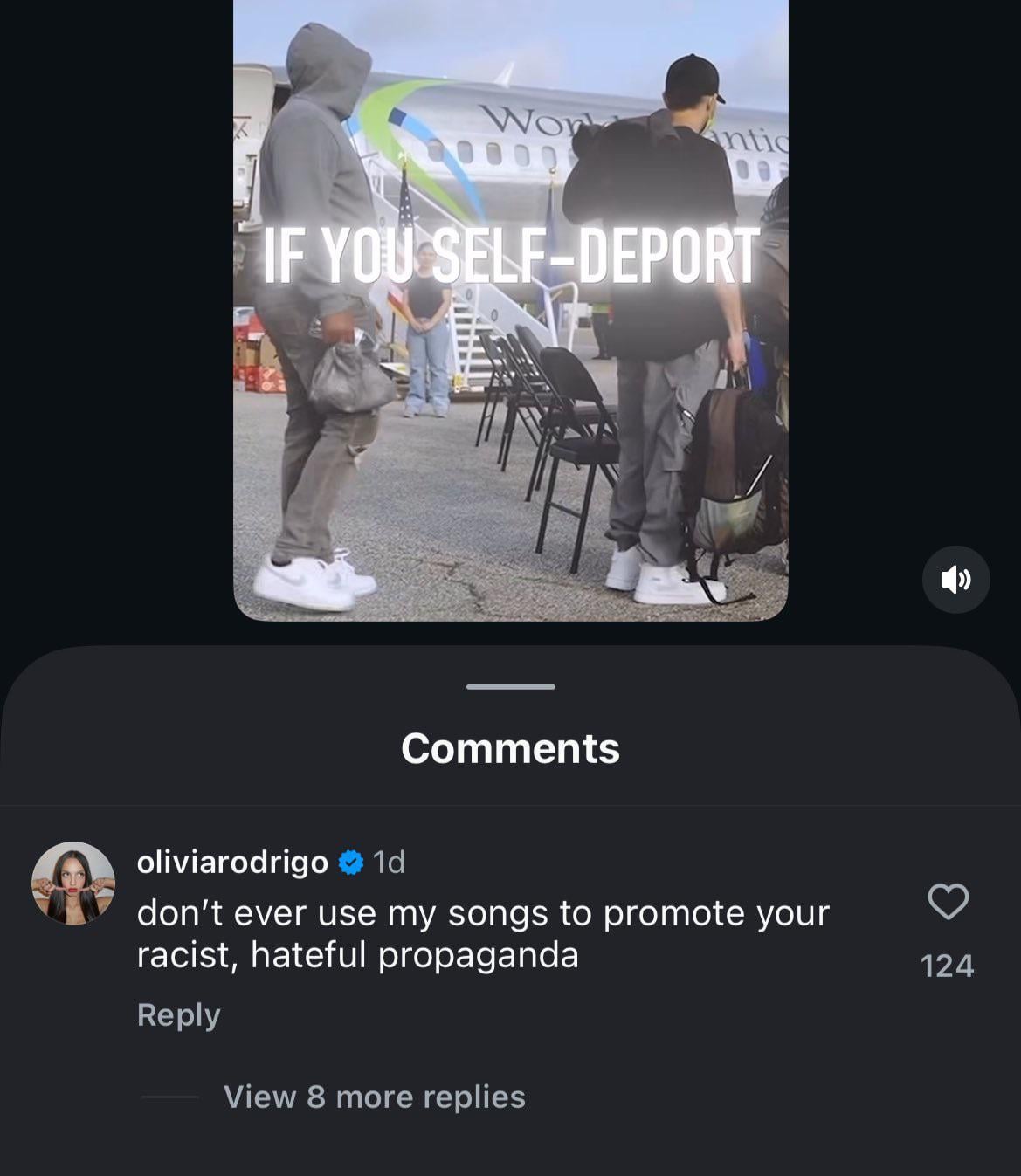 Olivia Rodrigo condemns use of her song “all-american bitch” on the Department of Homeland Security and White House instagram: “don't ever use my songs to promote your racist, hateful propaganda”Olivia Rodrigo condemns use of her song “all-american bitch” on the Department of Homeland Security and White House instagram: “don't ever use my songs to promote your racist, hateful propaganda”· 0 Kommentare ·0 Geteilt ·66KB Ansichten ·0 Bewertungen