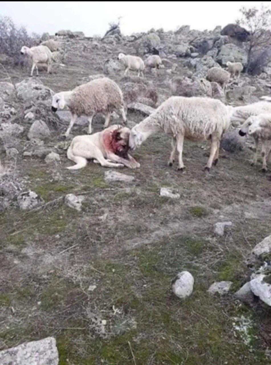Sheep shows gratitude to the dog after saving them from a wolf attack.
