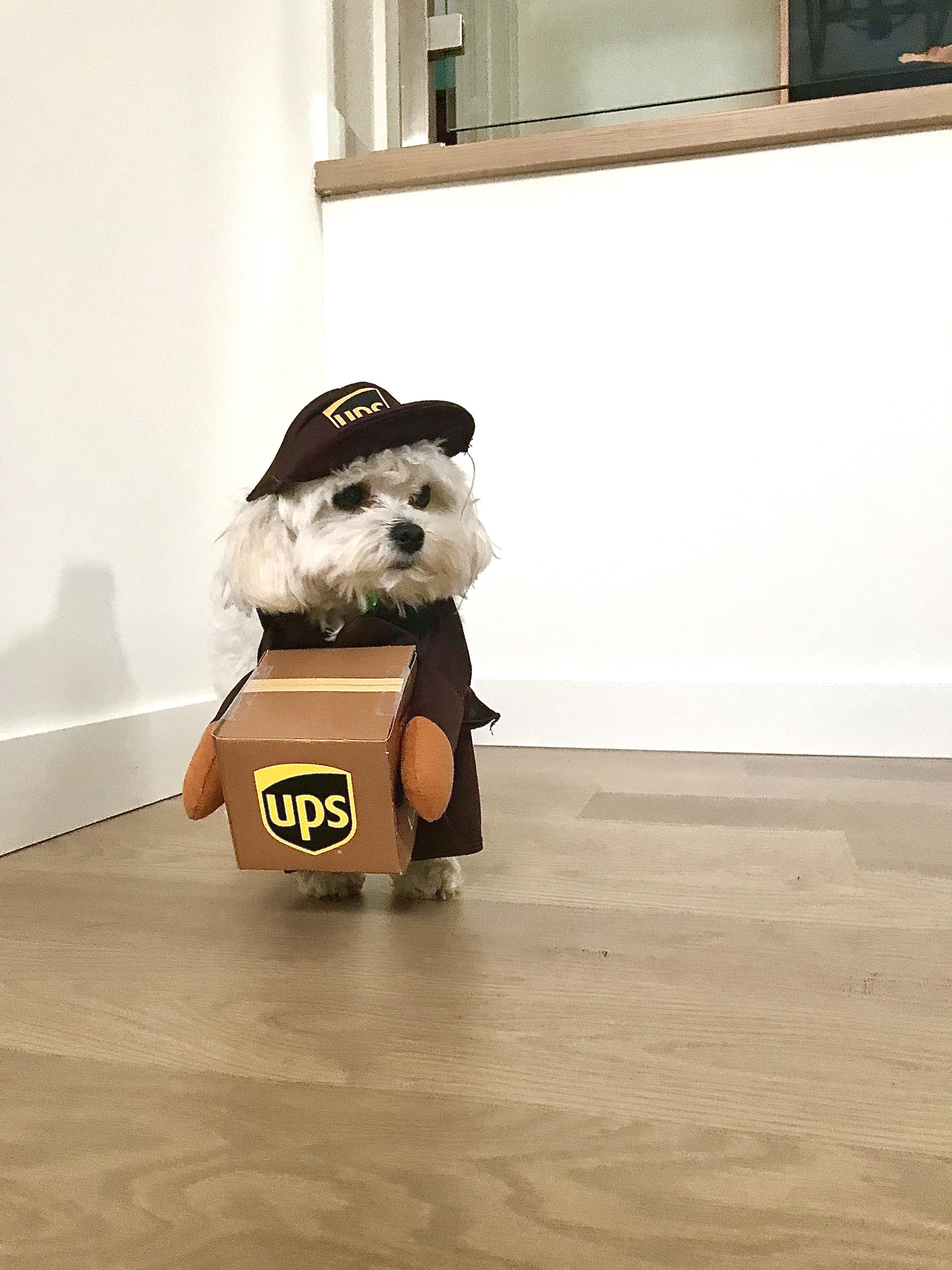 my dog as a UPS mailman! Getting in the halloween spirit