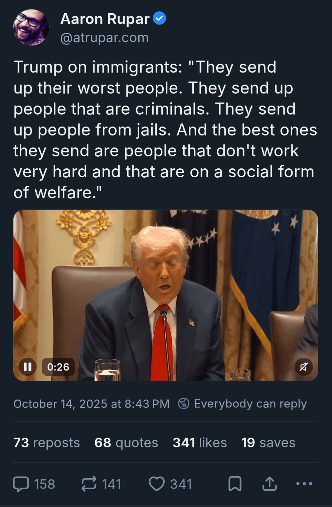 Trump on immigrants: "They send up their worst people. They send up people that are criminals. They send up people from jails. And the best ones they send are people that don't work very hard and that are on a social form of welfare."