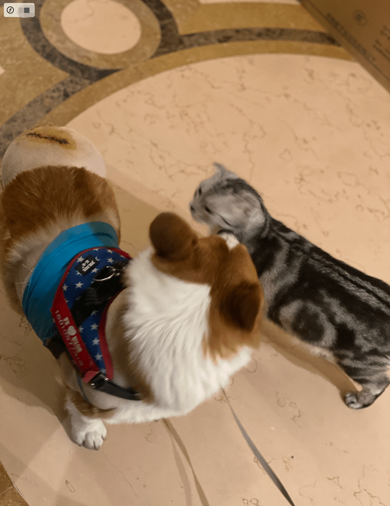 Diplomatic meeting between cat and corgi nations