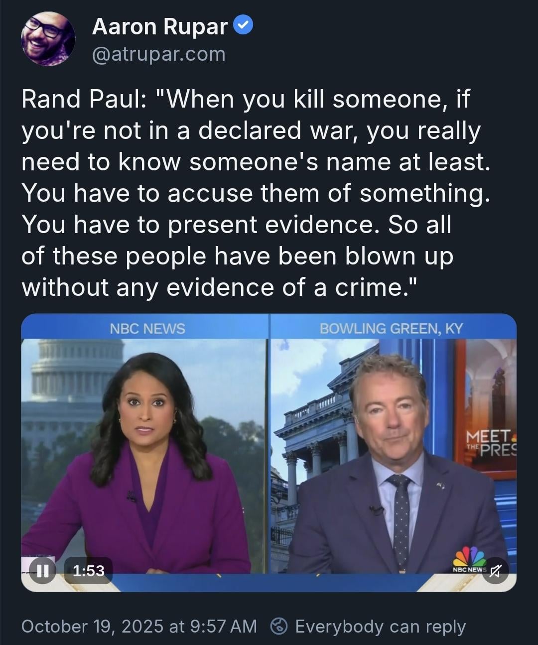 OR... we shouldn’t murder someone for having drugs in their boat even if we know their name and know there are drugs in their boat?