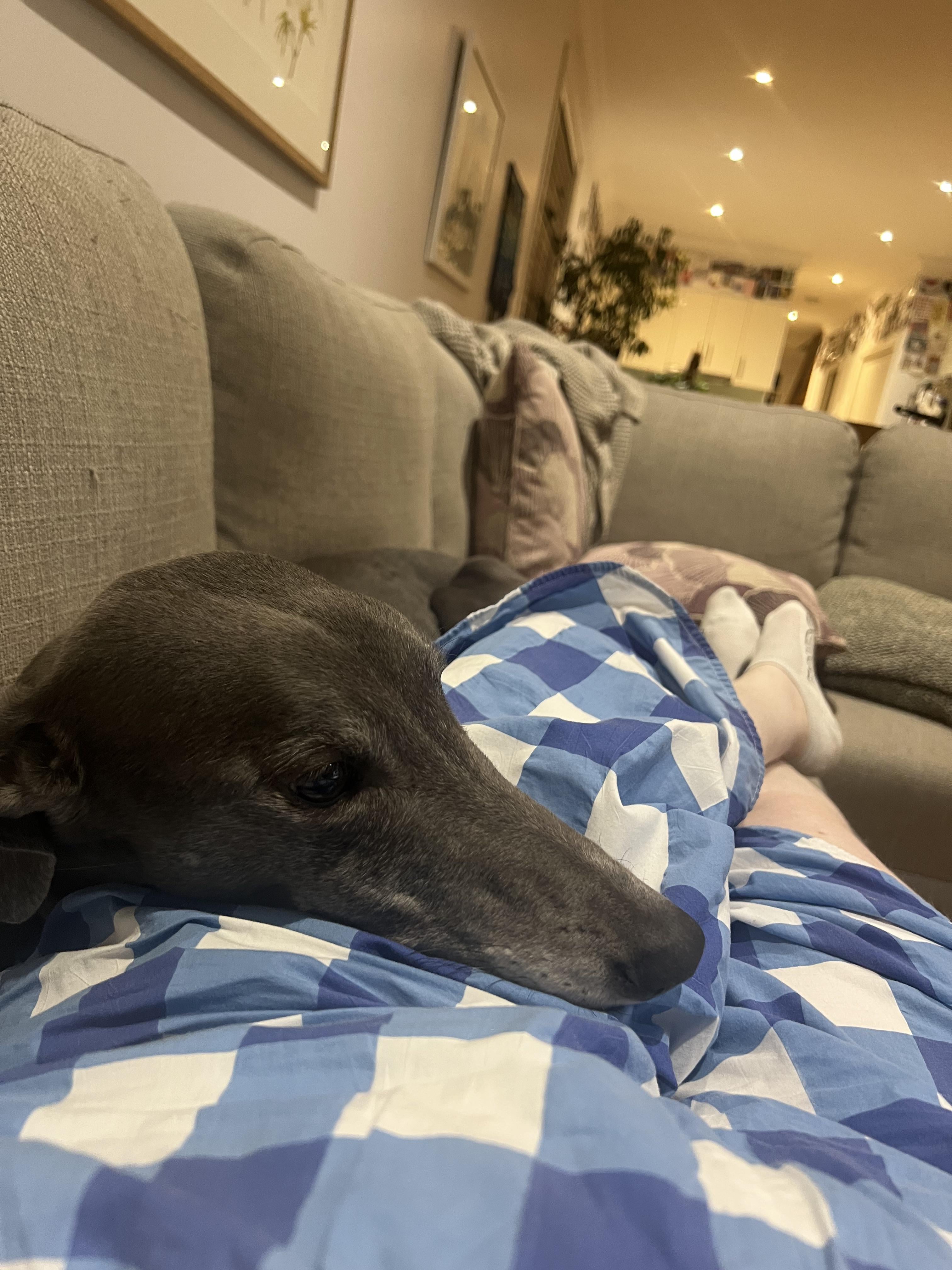 I was lying on the couch with a horrendous headache when she climbed up and squished in beside me and plopped her head in my lap as if to comfort me