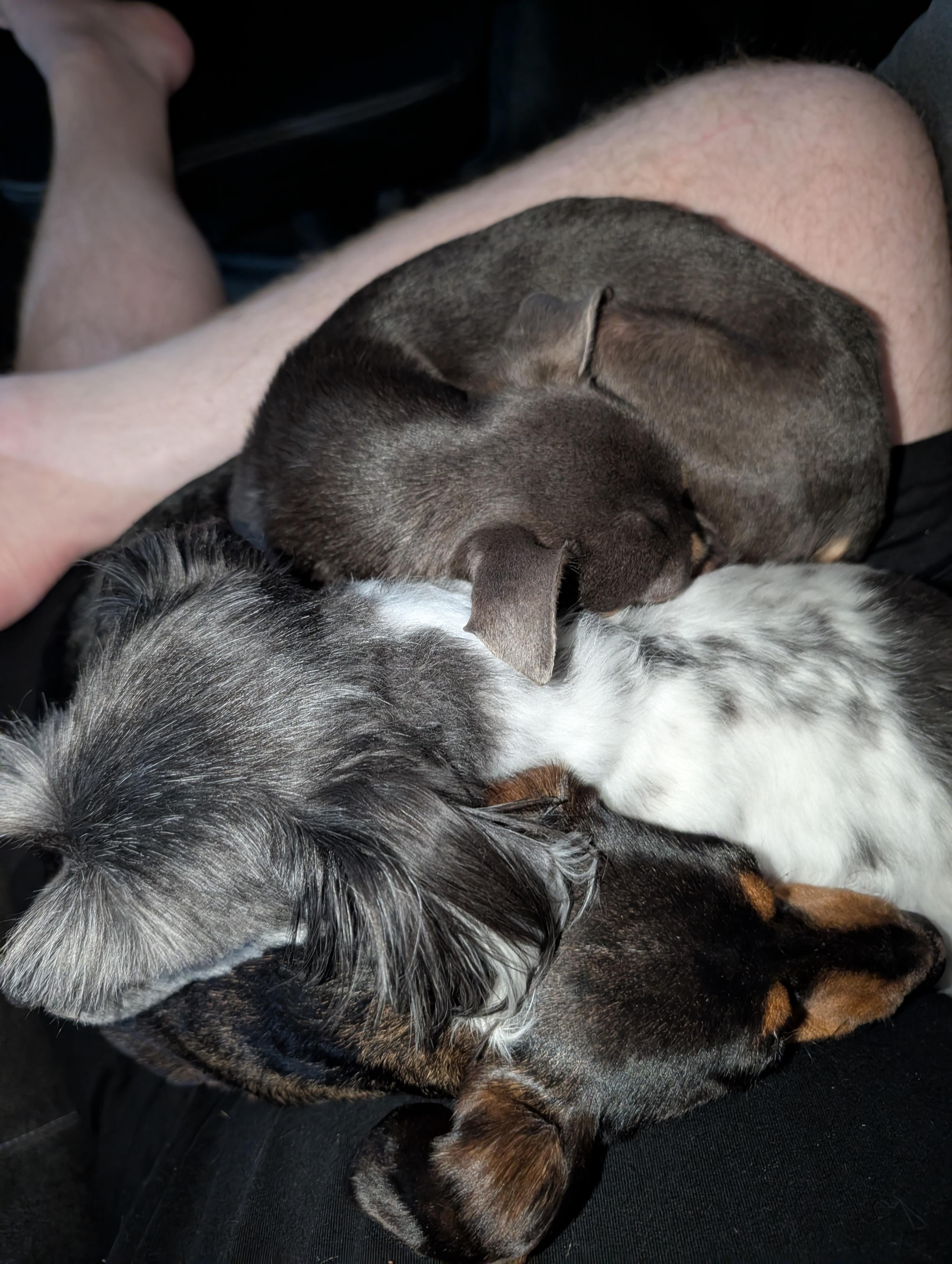 Last night with my foster, Rocco (the tiny one). He was adopted today!