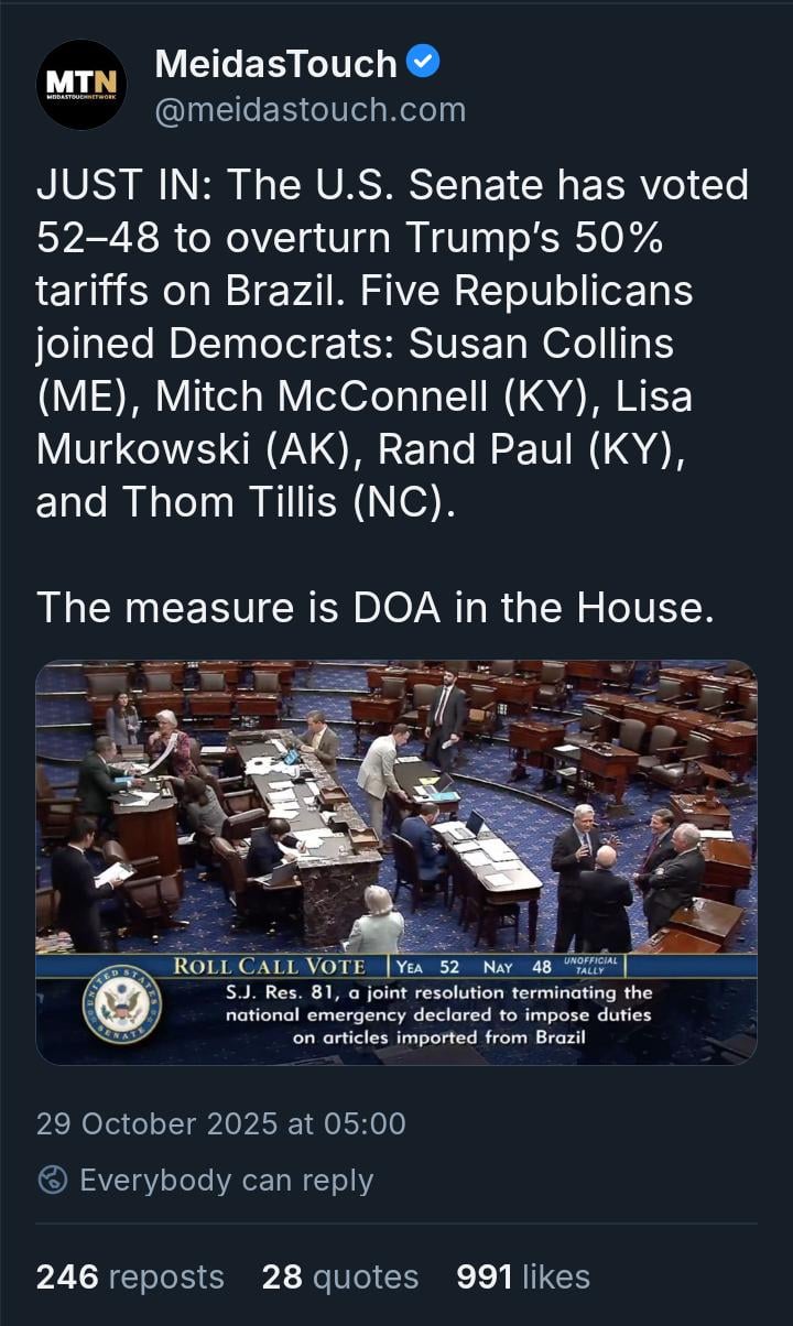 Five Republicans experienced temporary clarity. Symptoms include voting like adults.