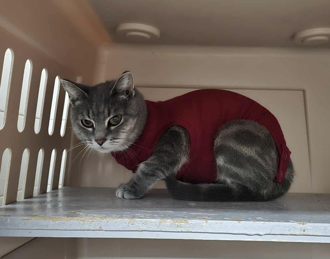 Astrid from our shelter is not a fan of the pj. (It’s temporary).