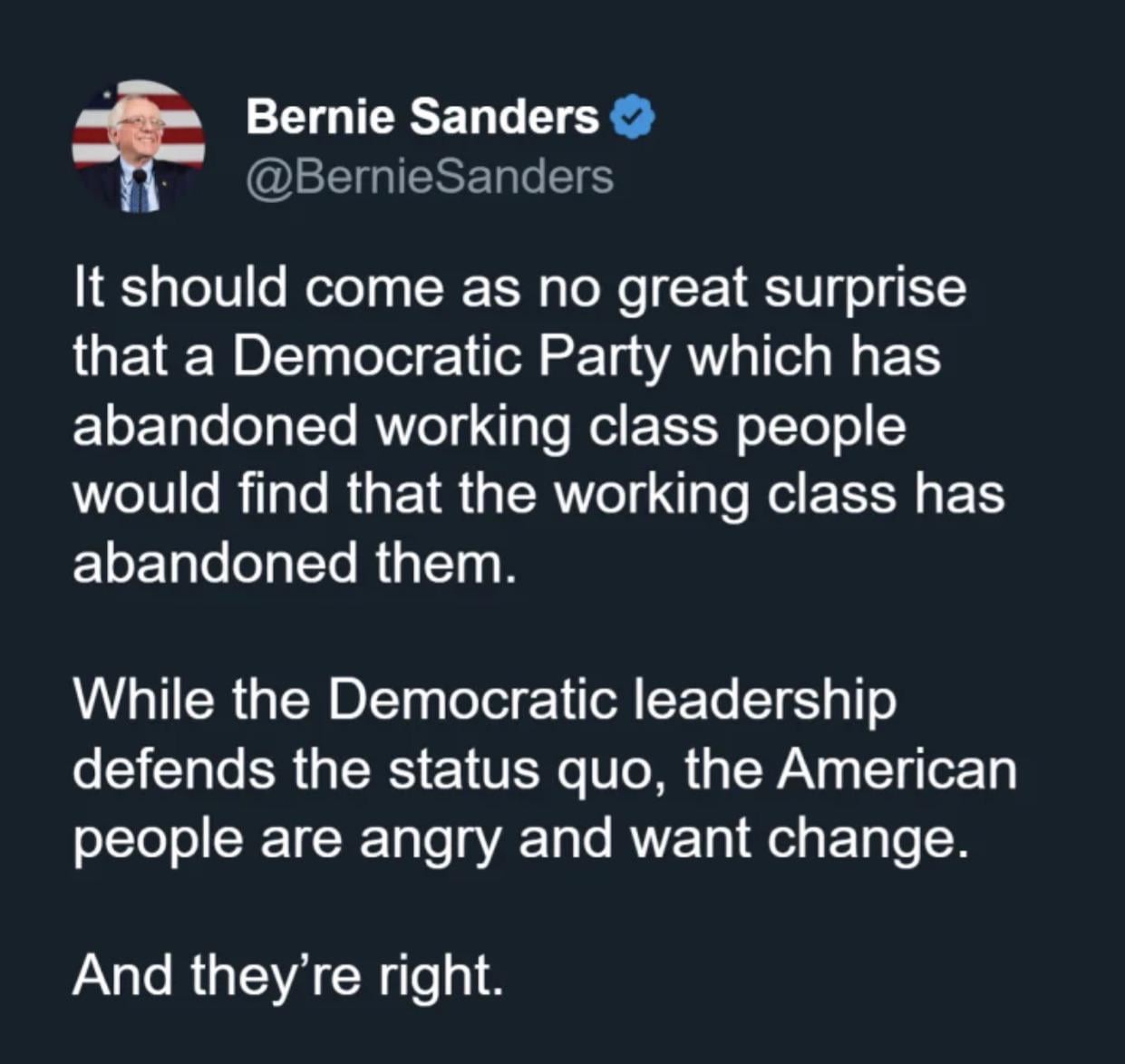 Bernie Sanders, gently pushing the pillow in the Democratic Party's face