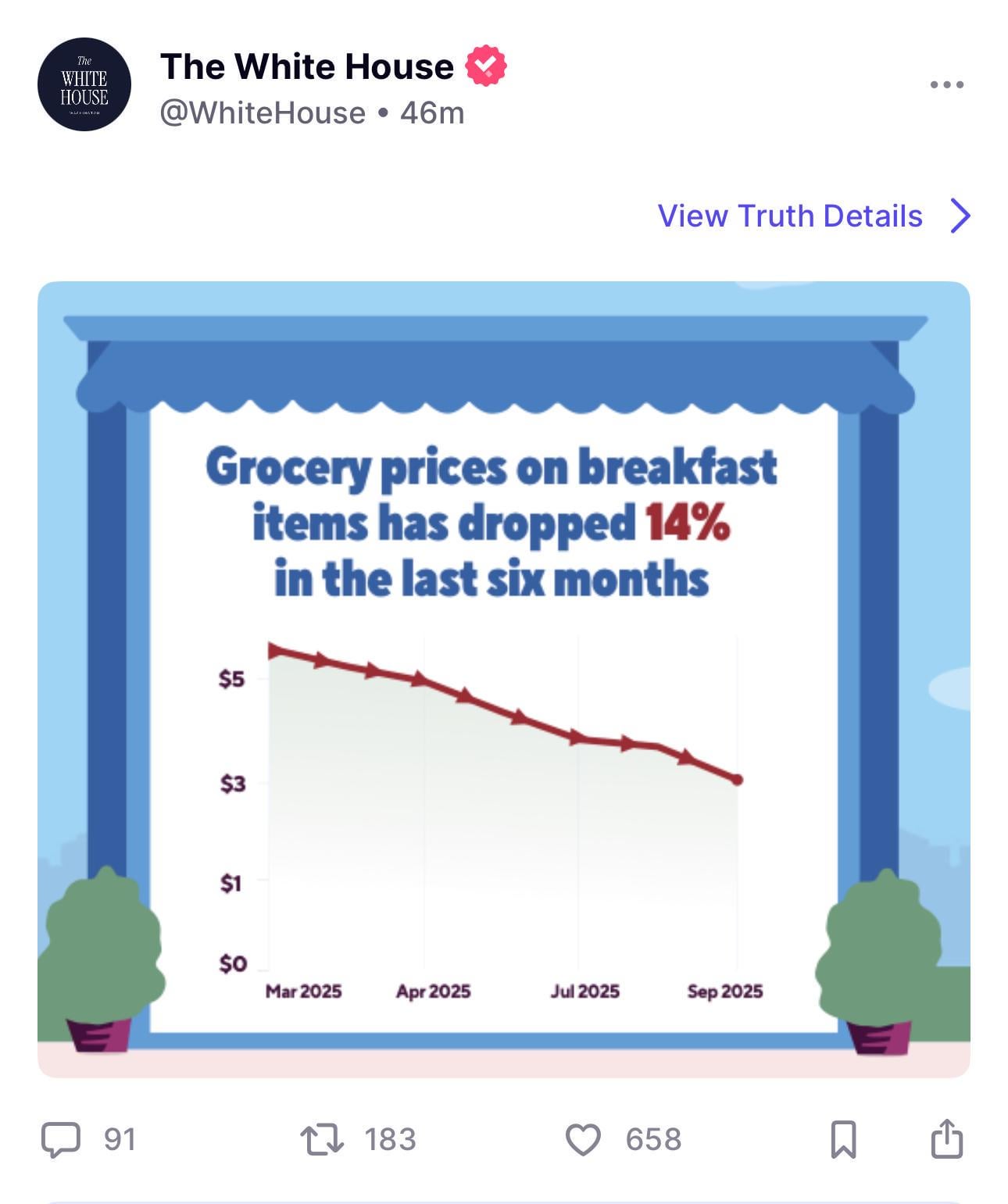 The White House: Grocery Prices on Breakfast Items Are DOWN
