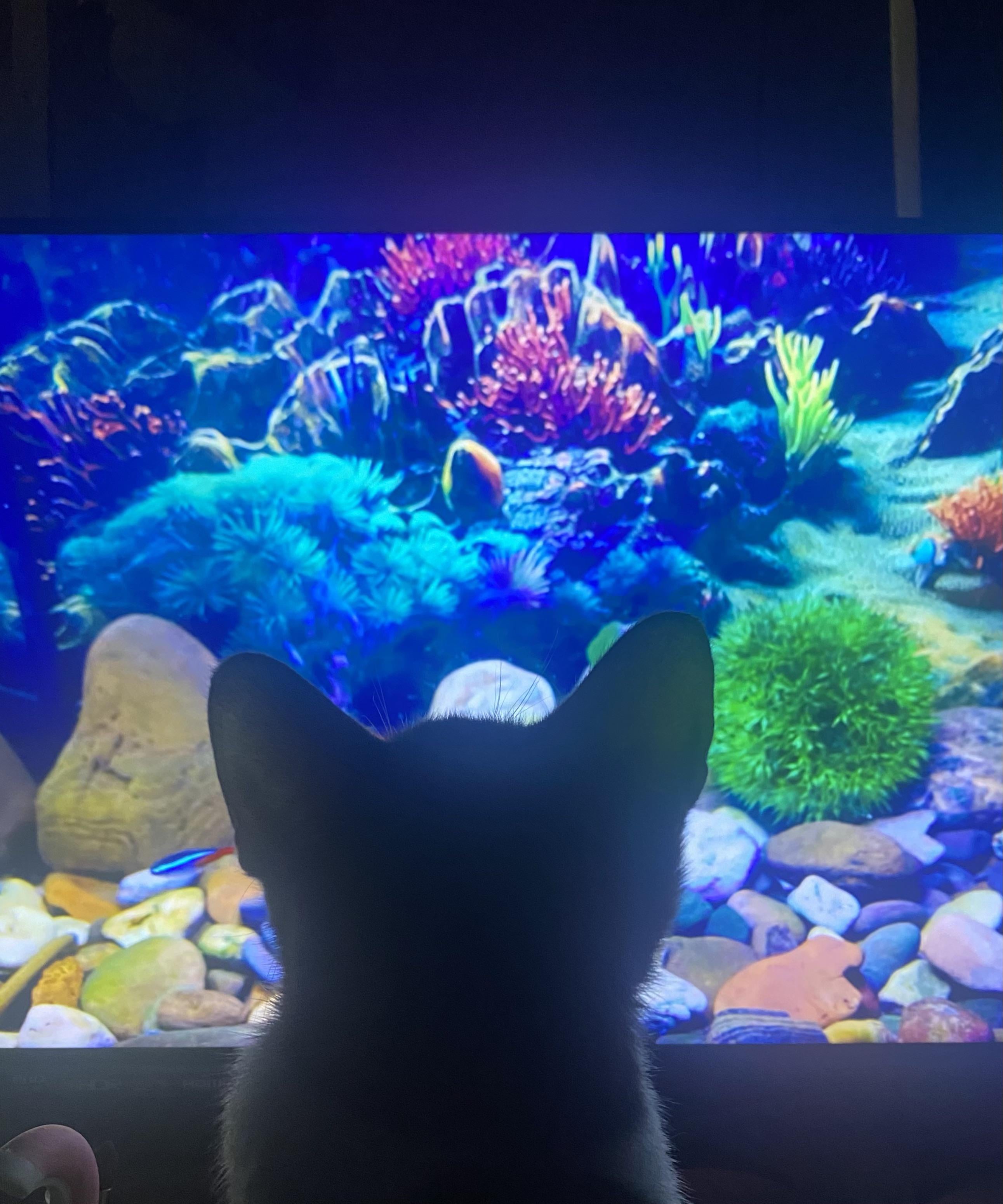 I turned on an aquarium video and now he won’t move TT TT