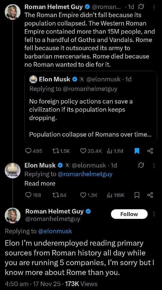 Getting ratioed by Roman Helmet Guy