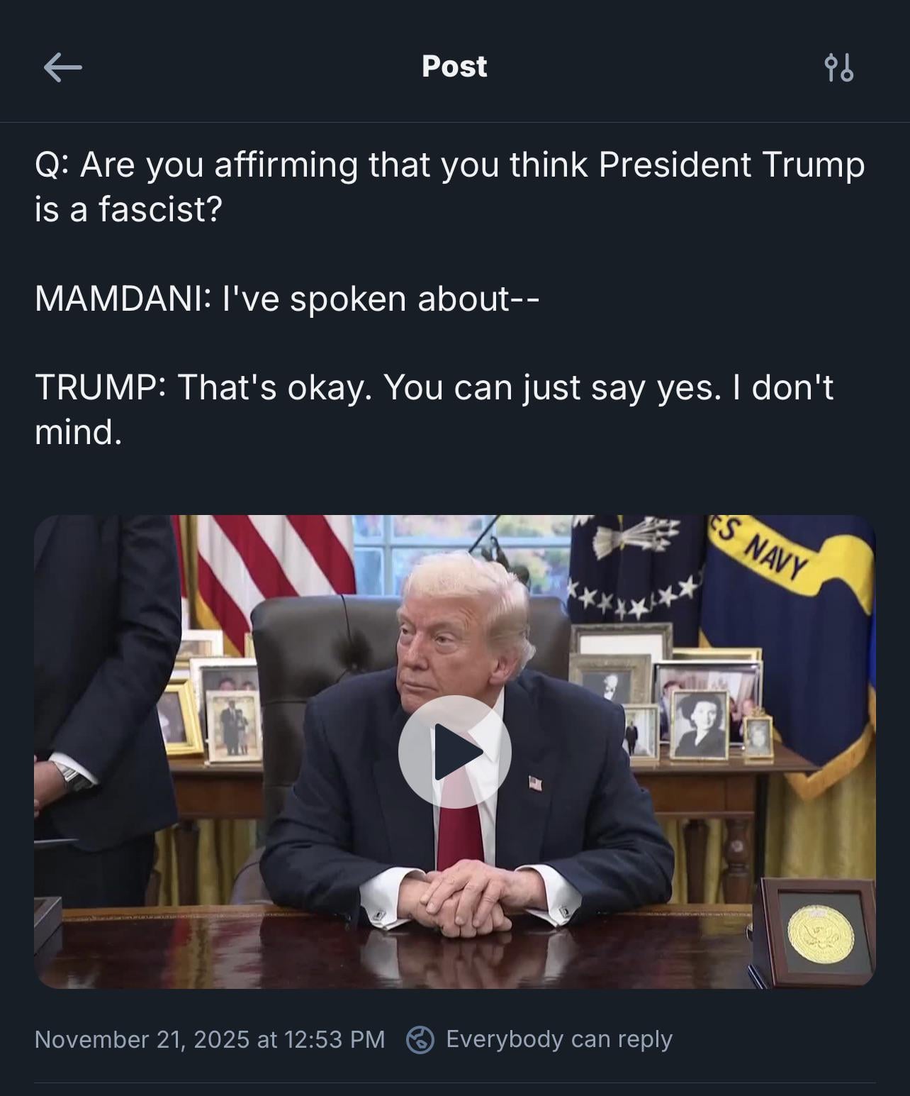OC: President Trump shakes hands with New York Mayor-elect Mamdani as they meet in the Oval Office