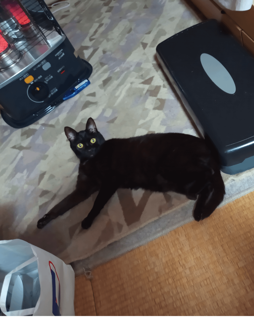Momo, our little heater guardian.