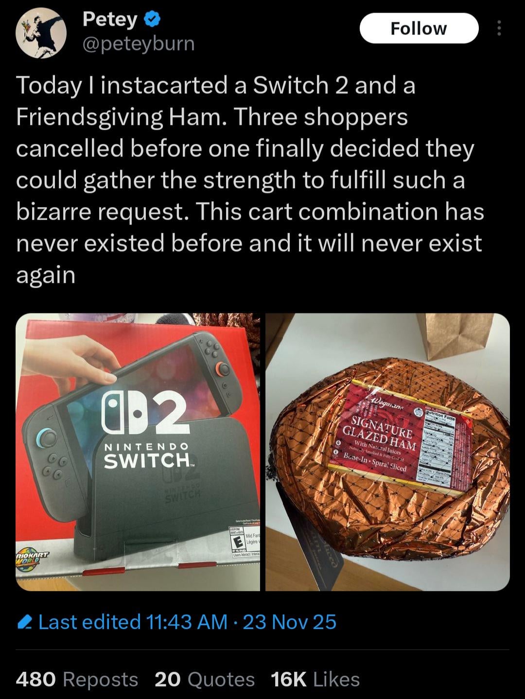 Making Thanksgiving/online delivery history, right there.