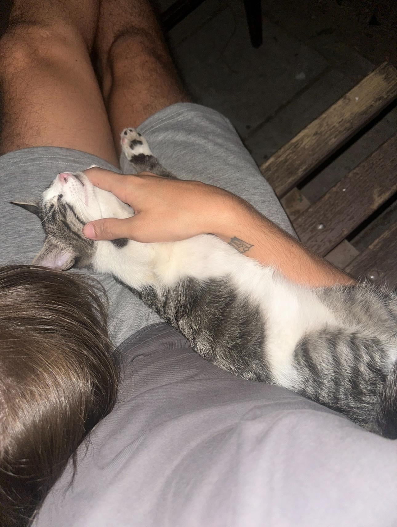 This little guy found me and fell asleep on my, next to my girlfriend.