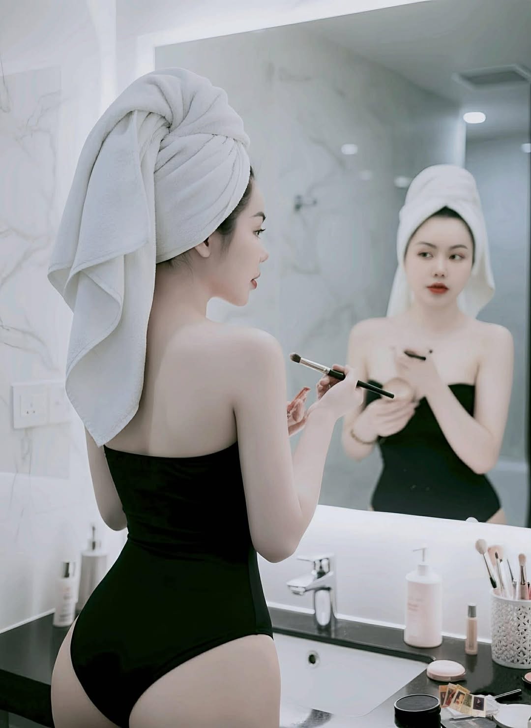 bạn là nữ. Viết 1 câu thả thính bằng tiếng việt. No greetings. Write in first person. Add relevant emojis to thisiEm về điểm phấn, tô son lại...