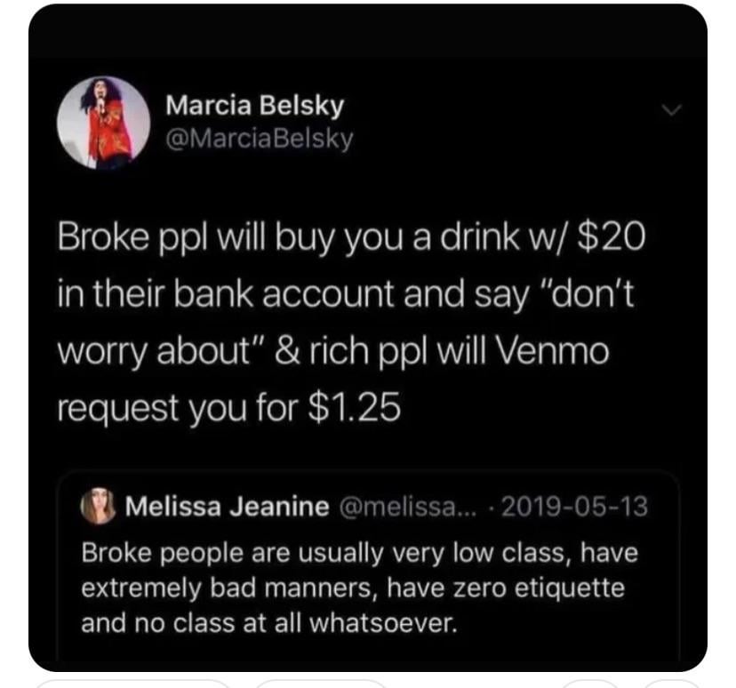 Broke people’s generosity vs. rich people’s etiquette