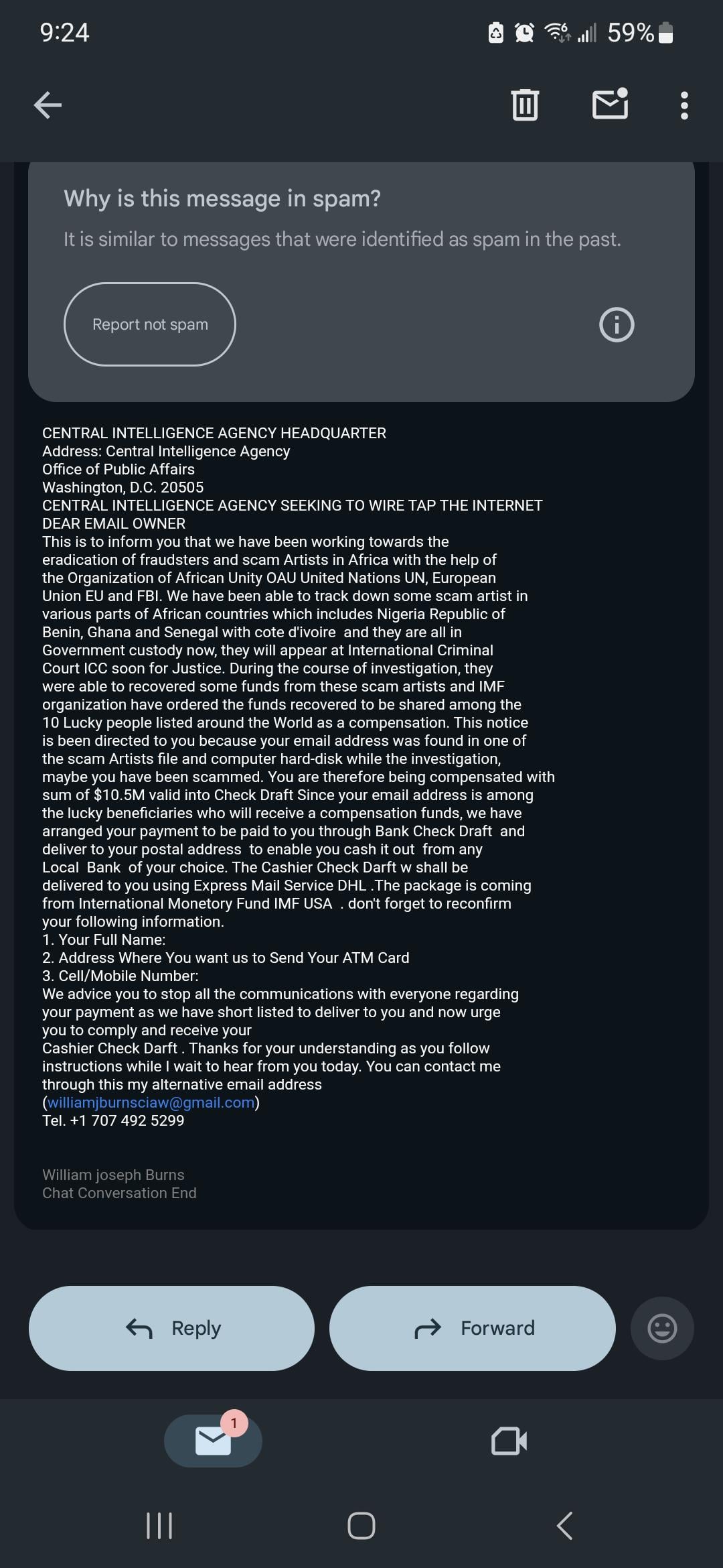 Nice Try Scammer. $10.5M is a bit much