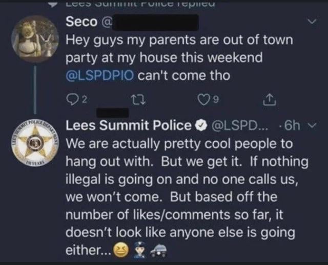 cops showing up to your party before it even starts