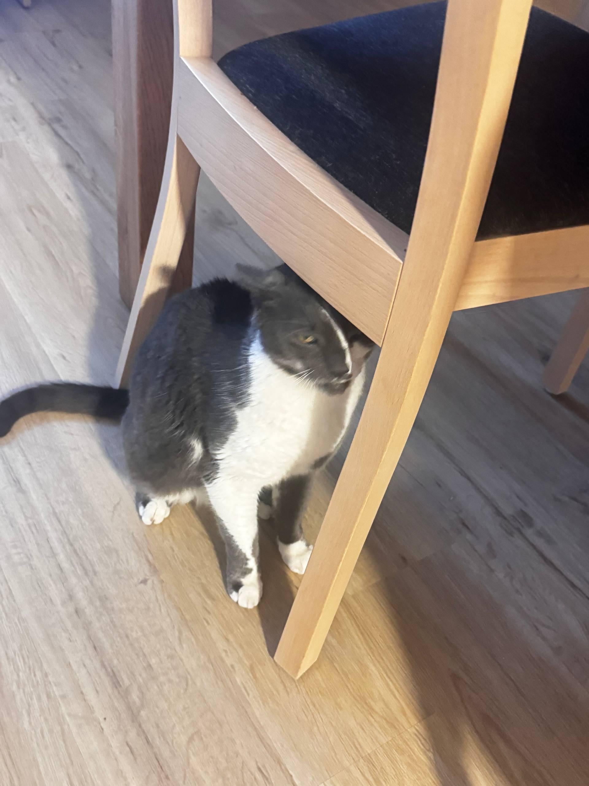 Mr. Gray also likes to play hide-and-seek, but he is worse at it than our dog.