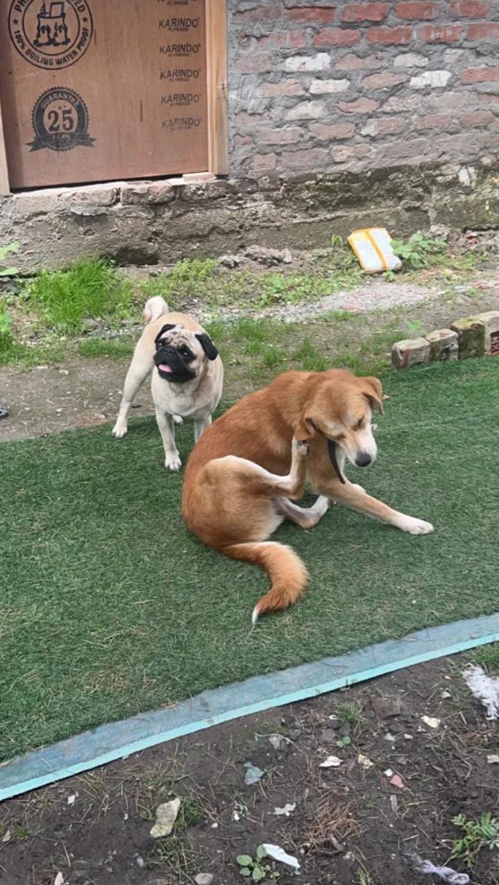 The pug looks like he scheduled this itch appointment.