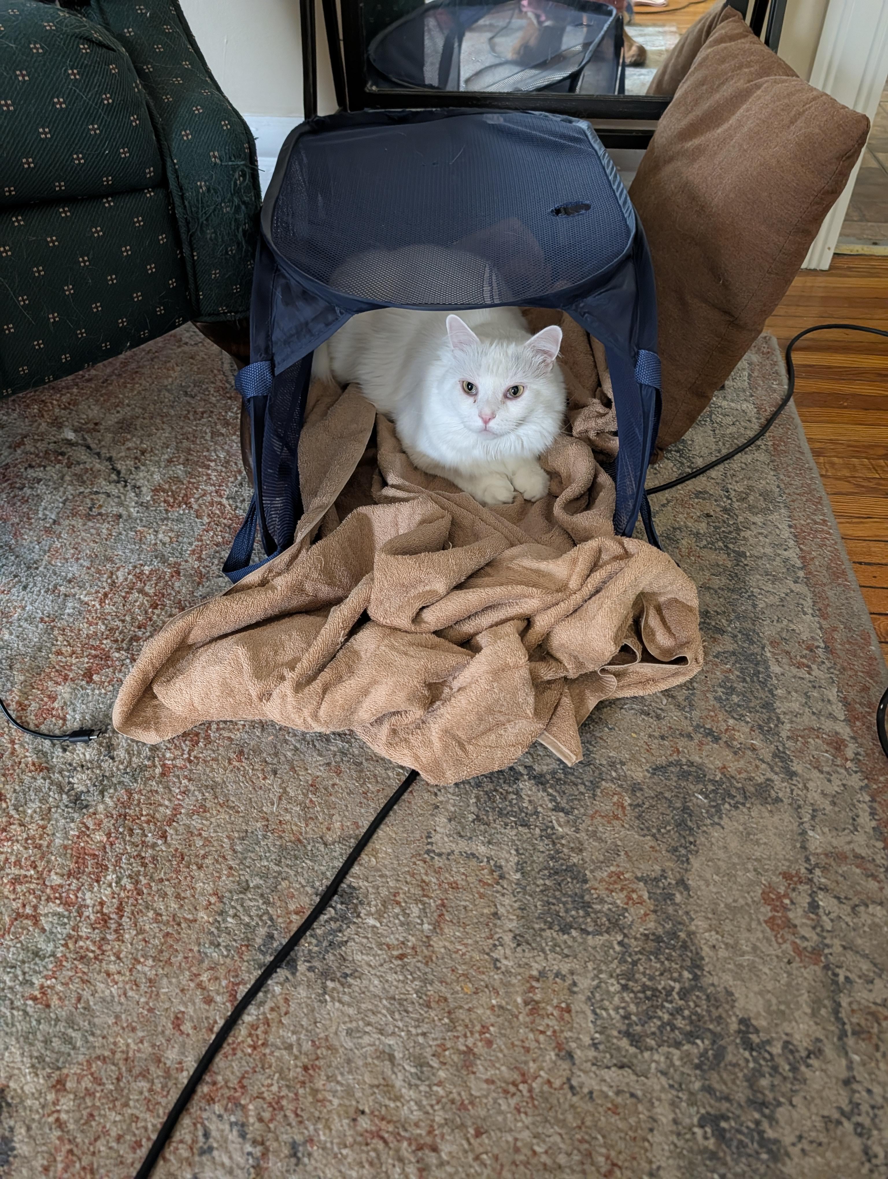 Miss Alaska loves sitting in the corning hamper. So I made it comfy while folding some laundry.