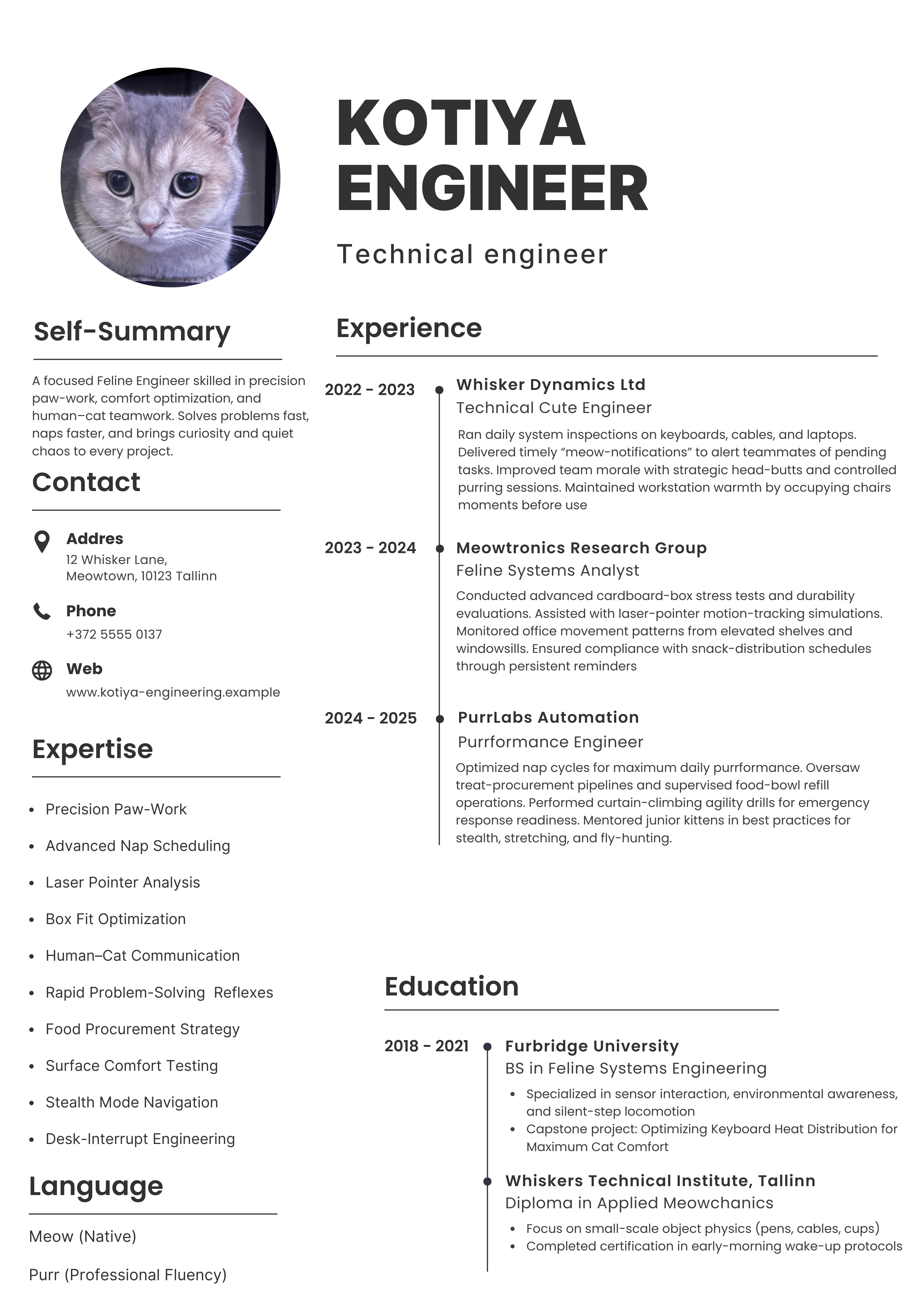 My cat has a better Resume then I do. Anyone hiring? [OC]