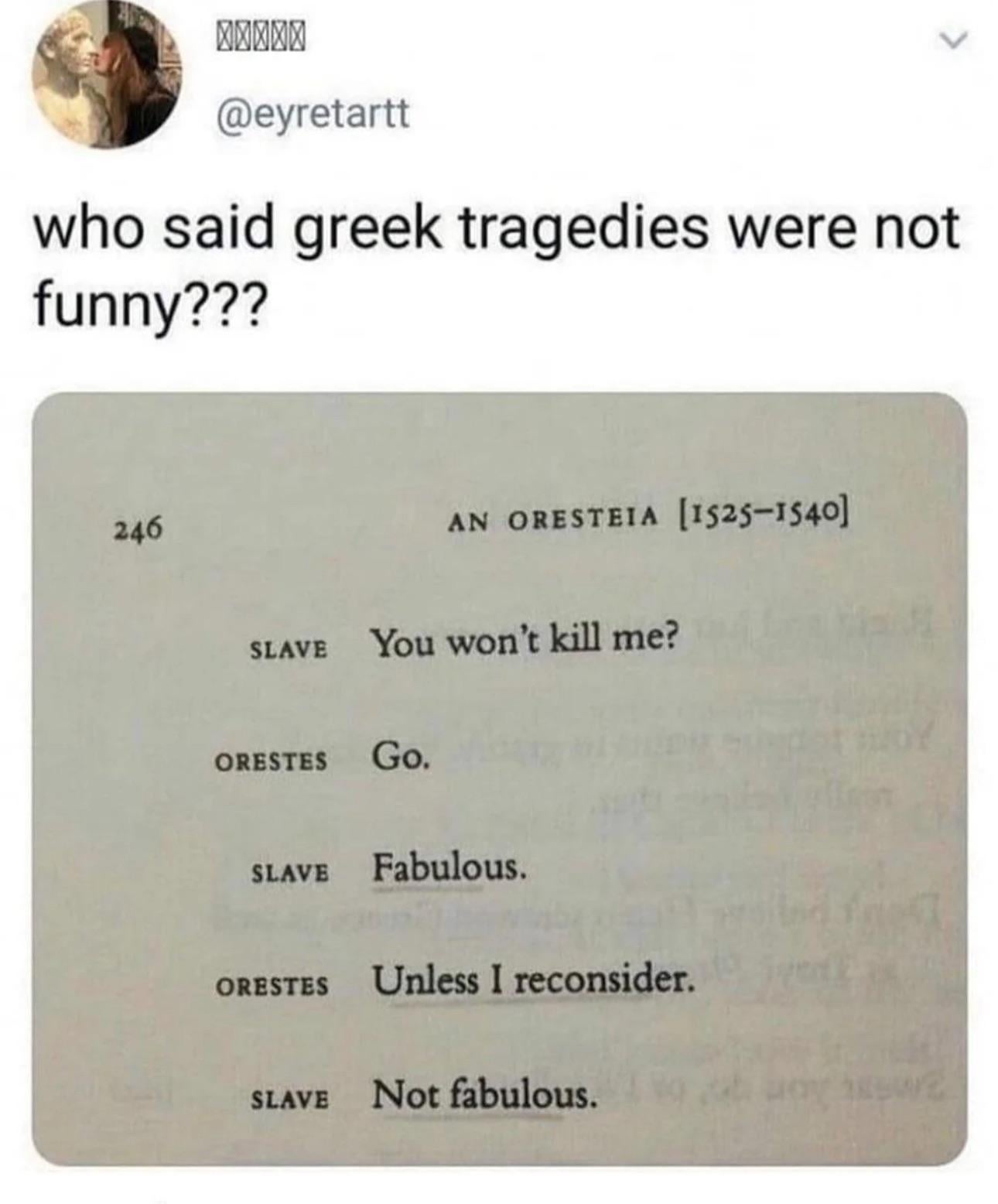 Greek tragedies were hilarious