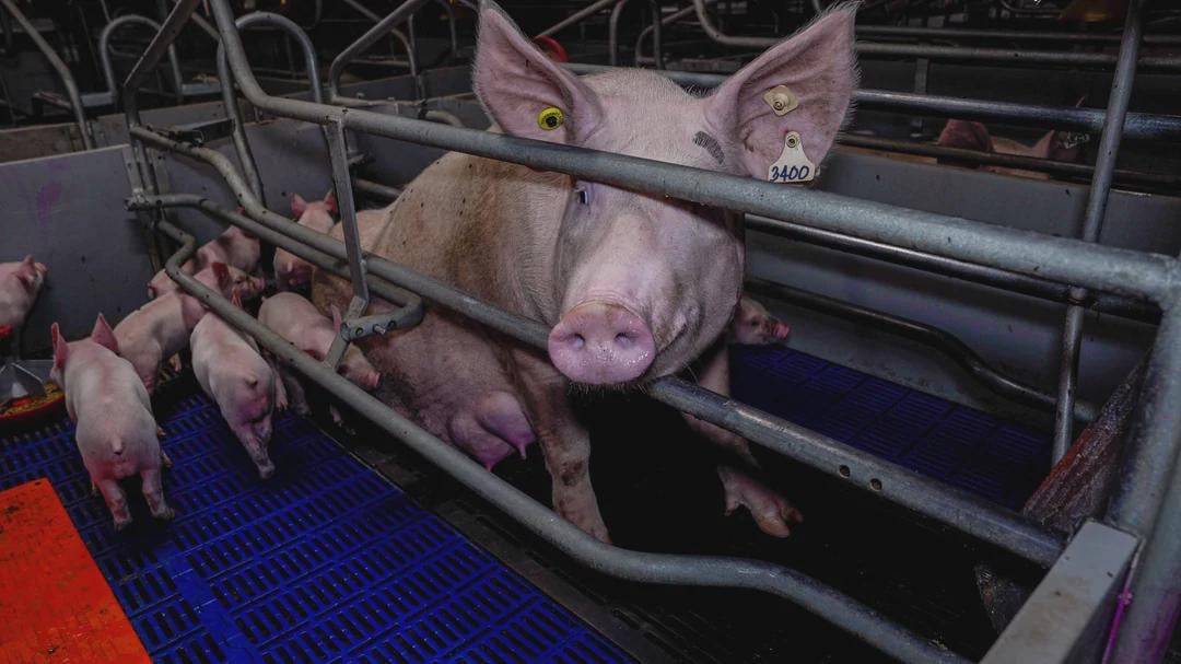 Mother pig and babies in a modern farm