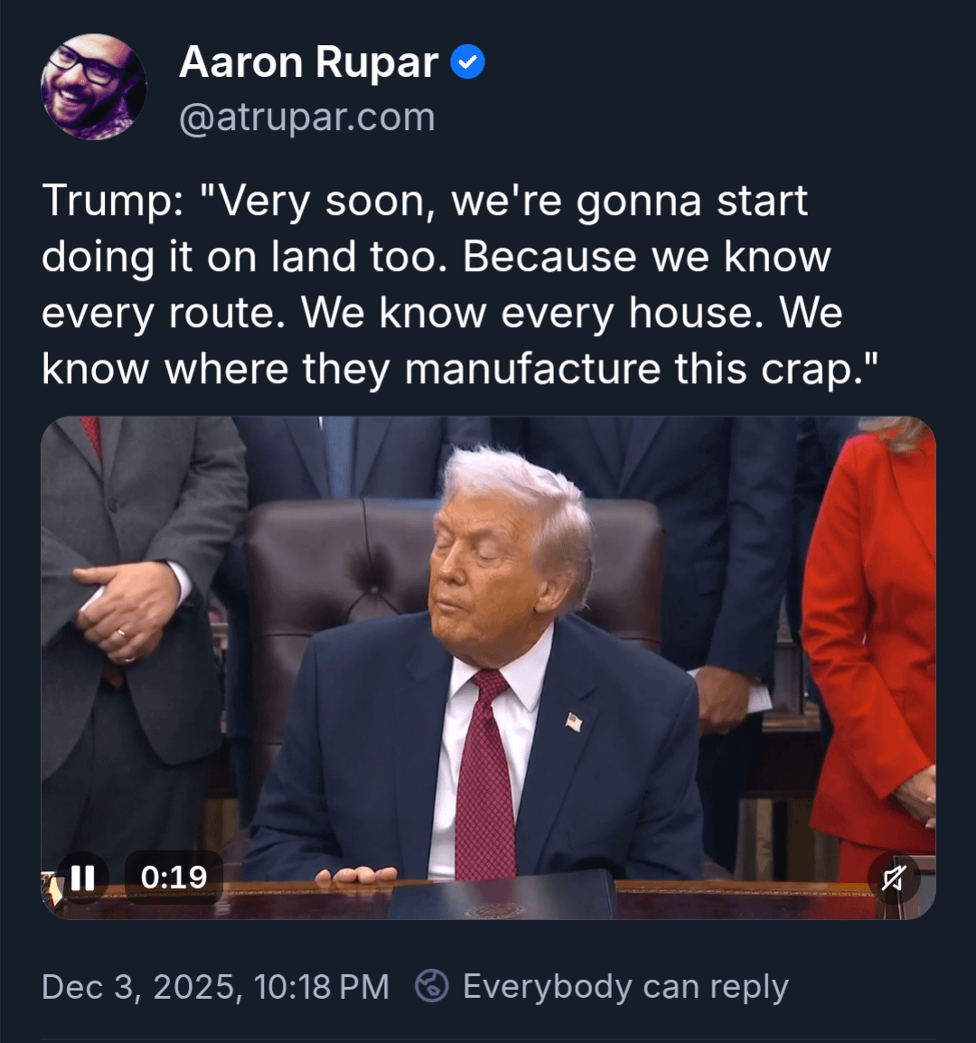 Trump says "very soon, we're gonna start" murdering more people. He's telling you he's about to commit more crimes.