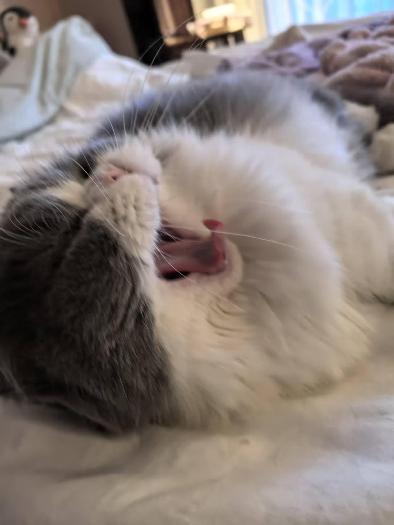 My cat mid-yawn looks like she just realized she forgot to pay her taxes.Cats are truly chaotic little creatures and I love it.