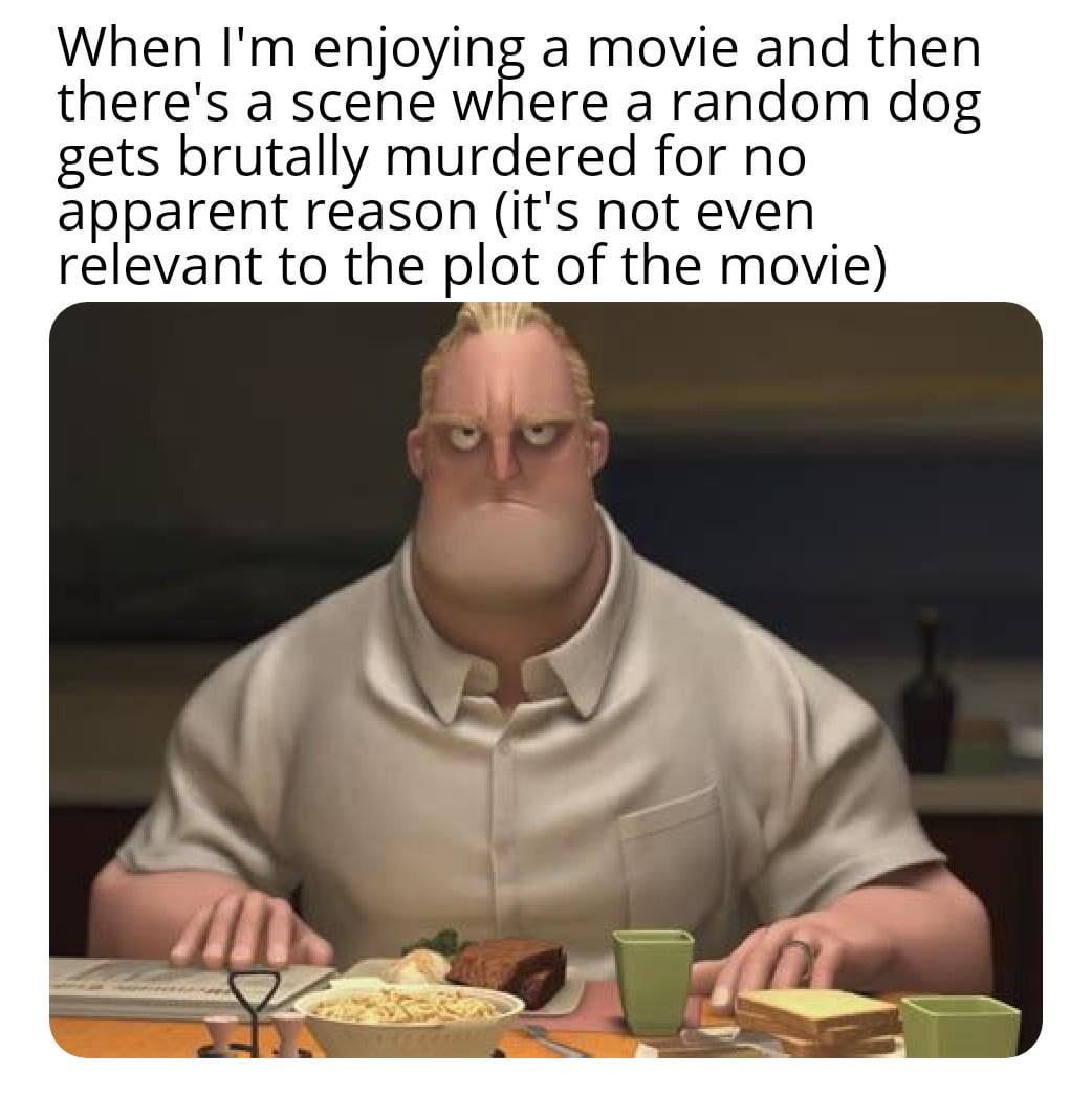 lol hate it when a movie just has a 1 minute scene where a cute dog just dies