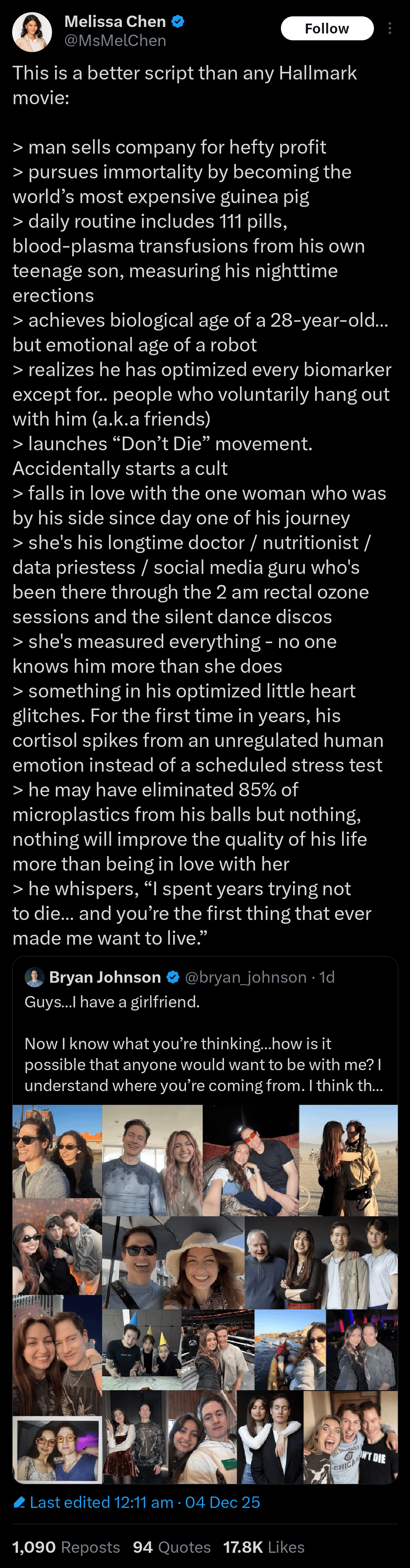 Bryan Johnson is the ideal Hallmark movie prince?