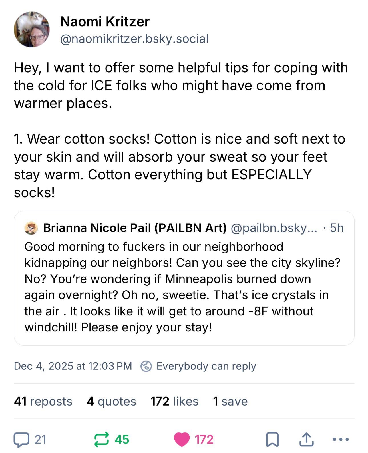 A thread full of good advice on dealing with winter weather for our distinguished guests from ICE