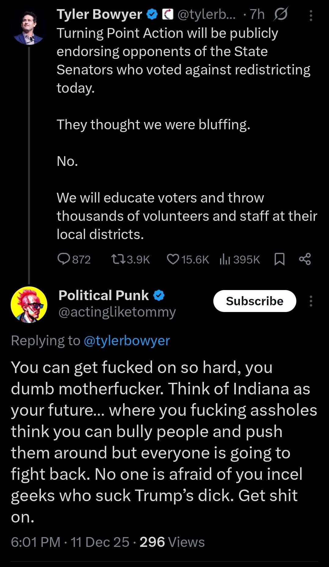 On TPUSA going after Indiana for not redistricting