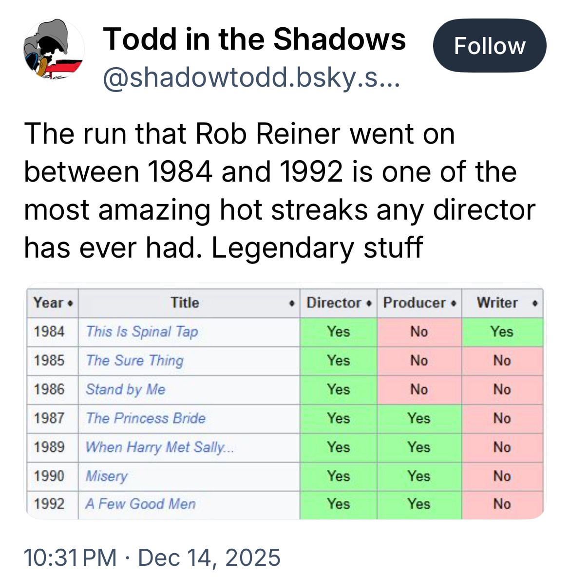 Rob Reiner somehow won no Oscar