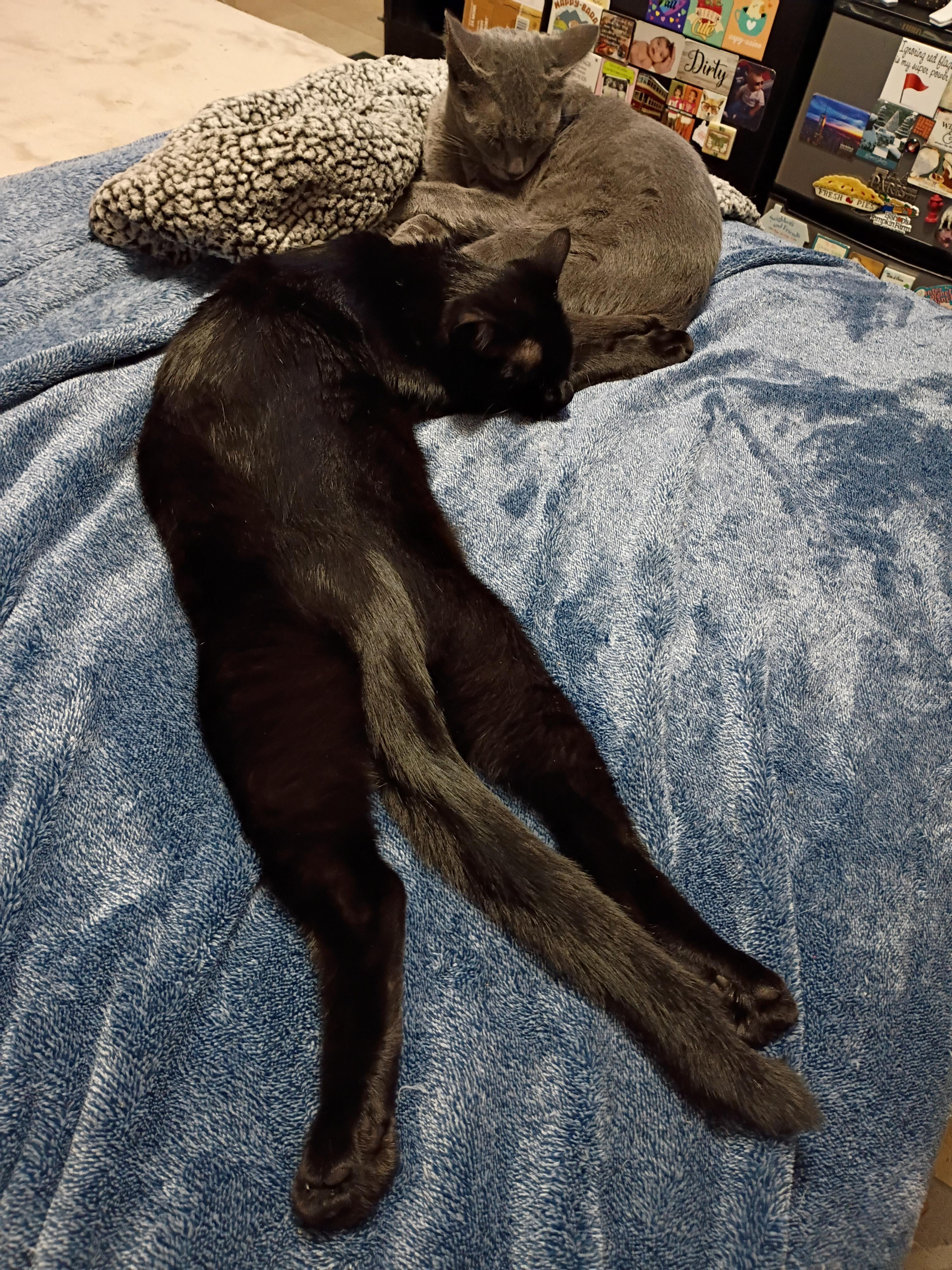 Twisted void sploot cuddling with a dust kitty