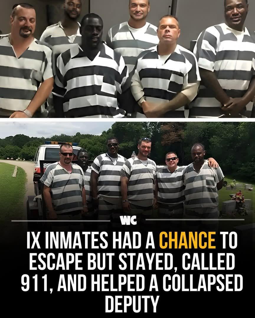 In June 2016, six inmates on a Georgia work detail watched their supervising deputy collapse from heat exhaustion. With escape within reach, they chose compassion instead, removing his vest, calling 911, and staying by his side. Their actions saved his life and earned public praise.