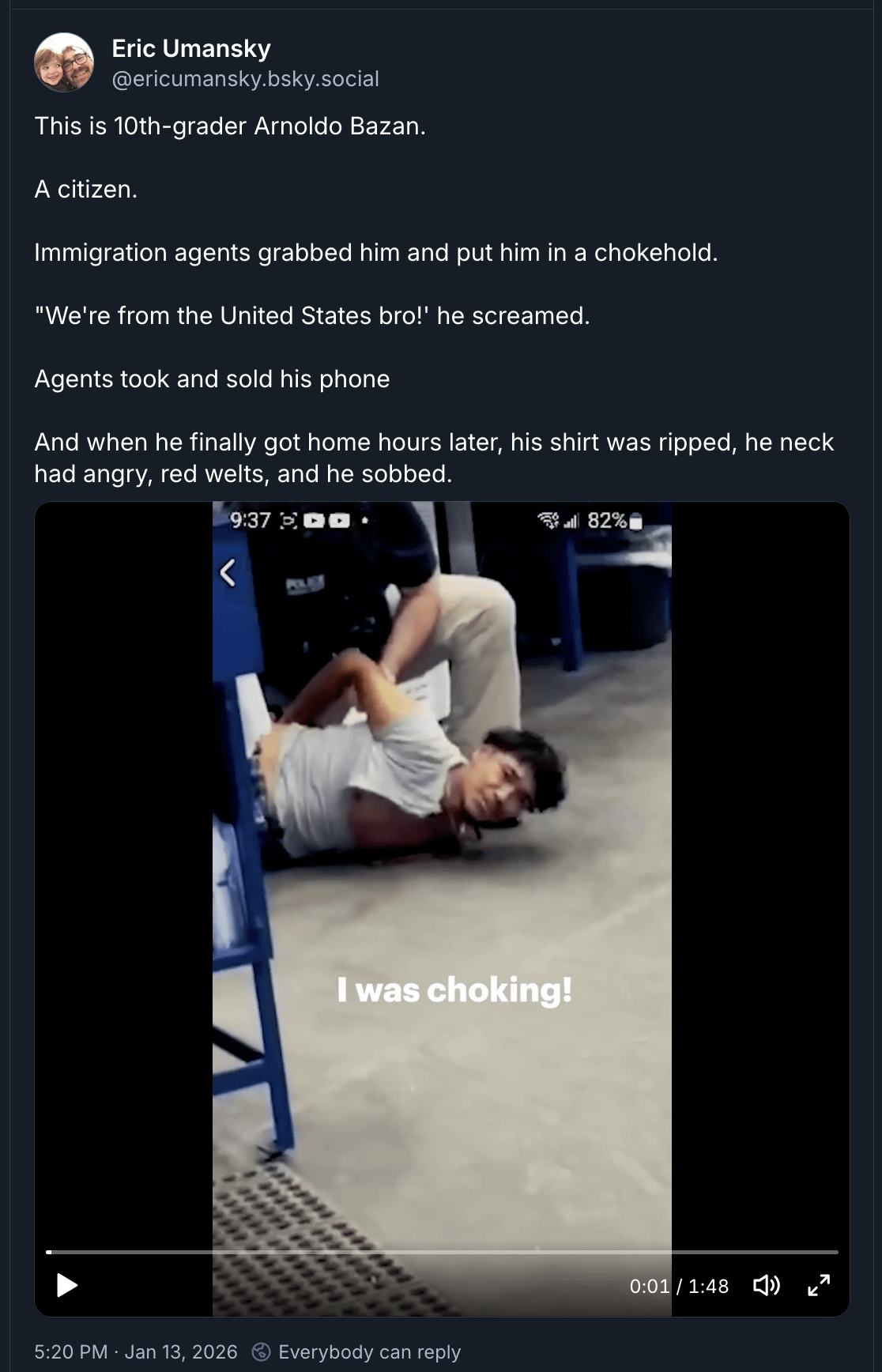 ICE is bottomless evil - they put a US teen in a chokehold, arrested him, and then SOLD HIS PHONE