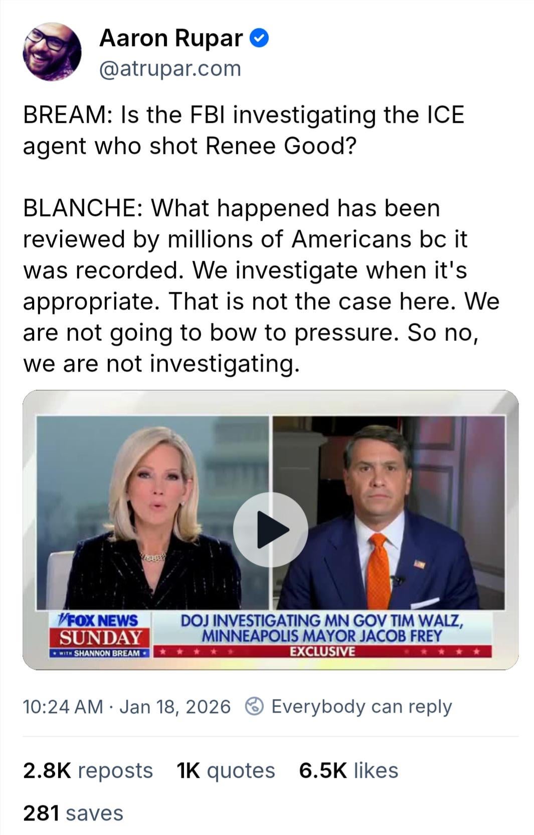 WaPo: FBI "in Minnesota conducted an initial review ... and determined that sufficient grounds existed to open a civil rights probe into the actions of Jonathan Ross"