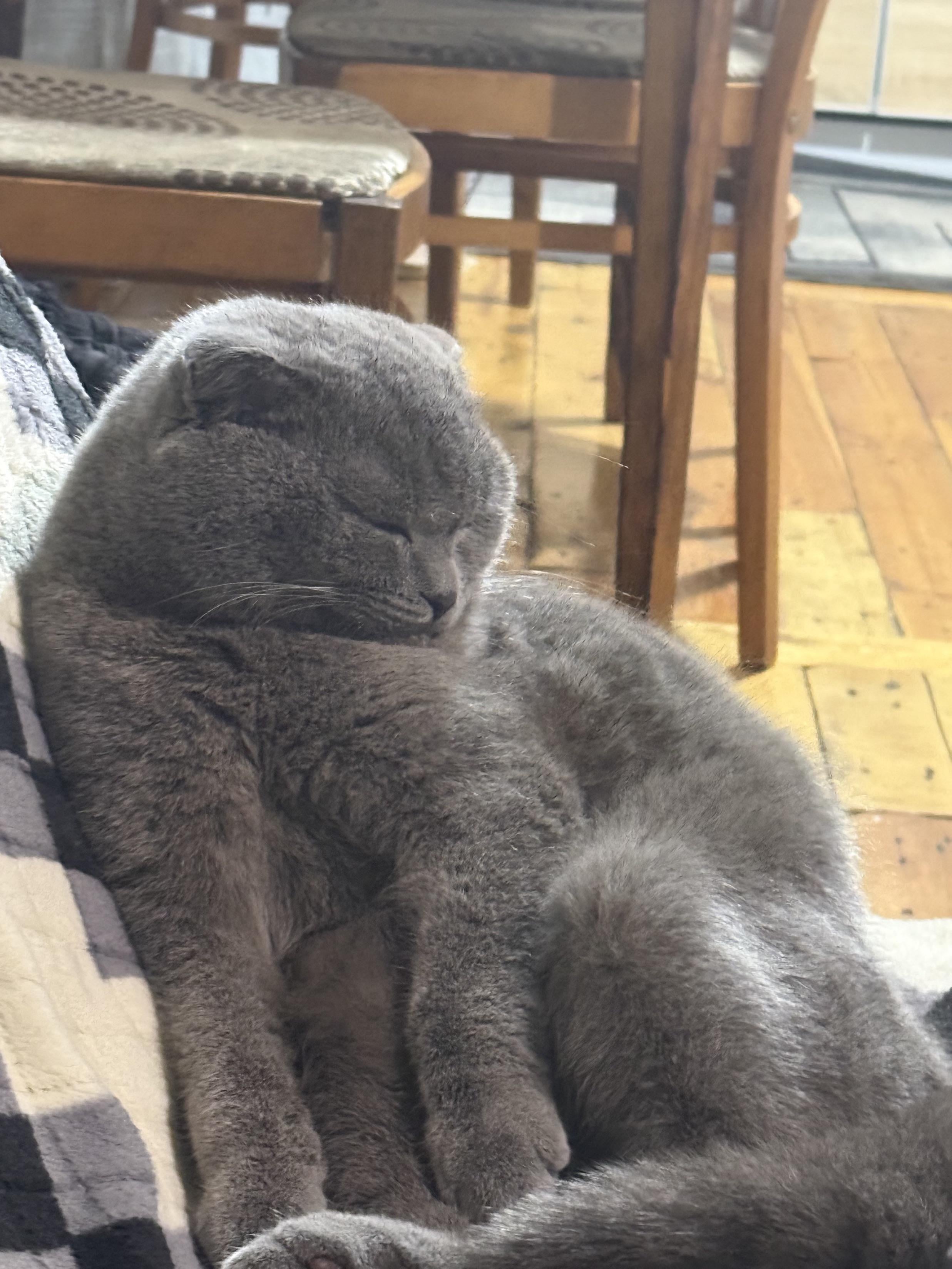 My friend’s cat fell asleep sitting like this