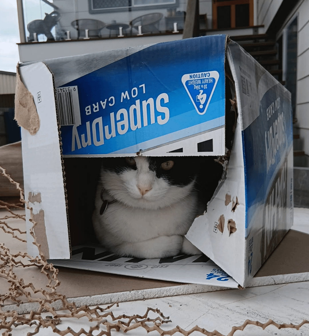 Tuxie loves her boxes