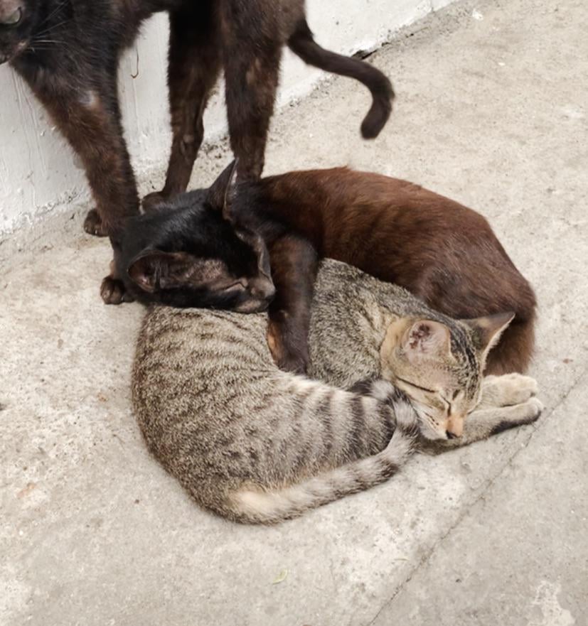 it was a cold afternoon and i was going out to call the cats back inside and found them all cuddled up