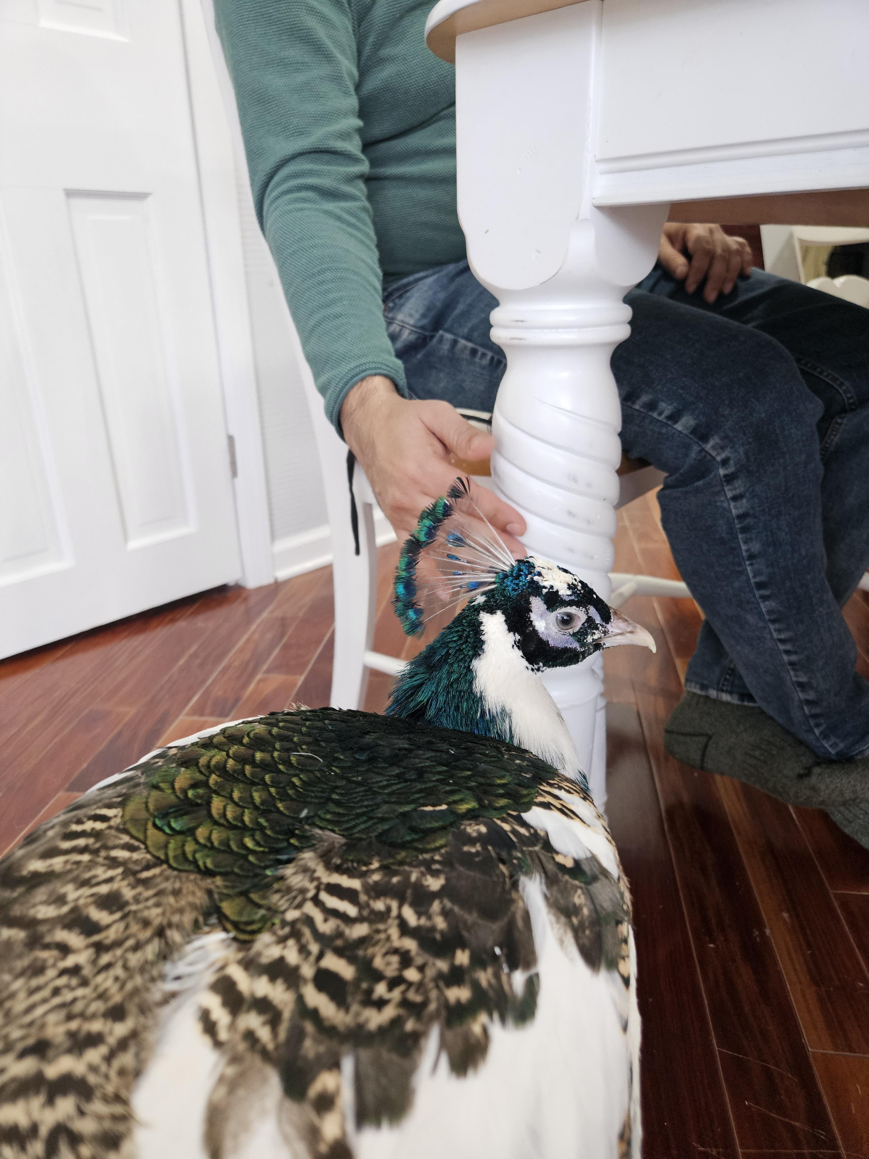 Little pea and his human father in matching green outfit.